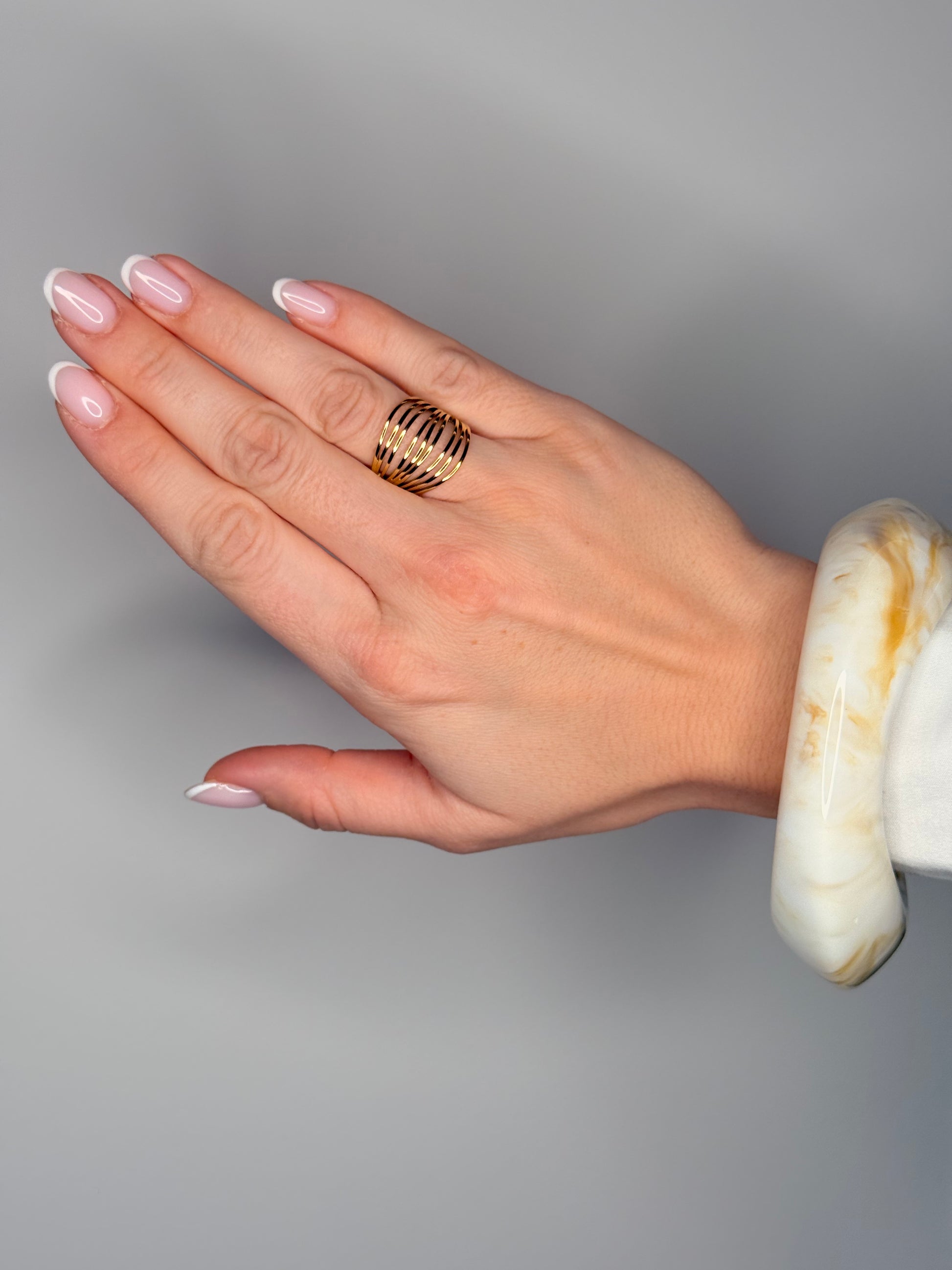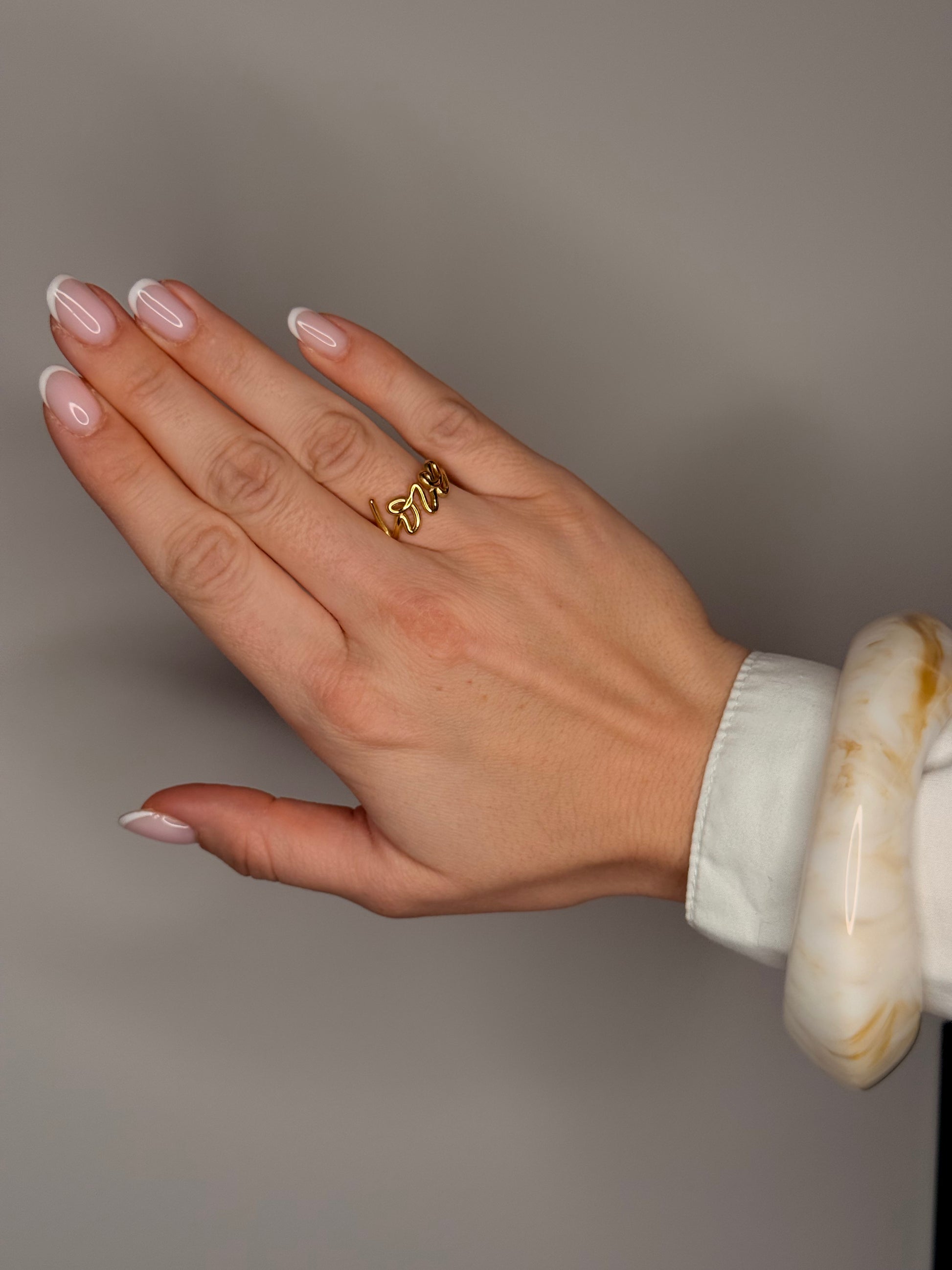 La Collection Brise Dorée réunit trois bagues incontournables : Océane, Myra et Love. Chacune possède son propre caractère, mais toutes partagent ce même éclat doré qui capte la lumière avec douceur.